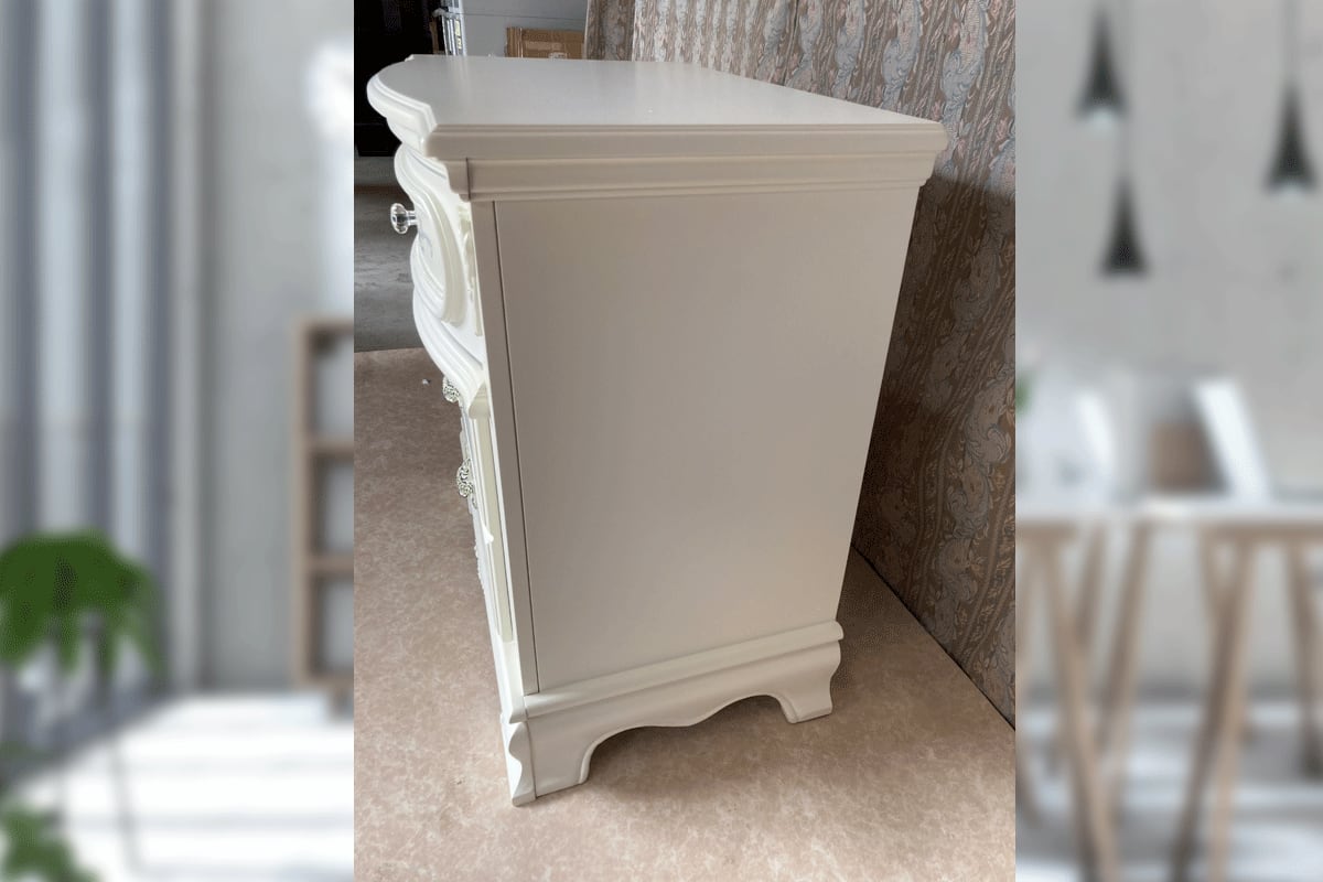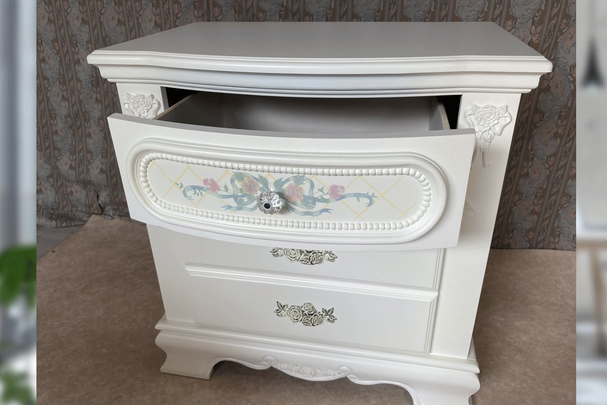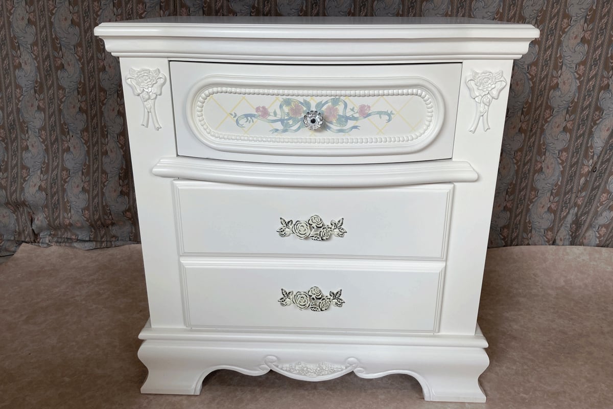 直輸入品のナイトスタンドです。ベッドサイドの小物入れや、電話台としてなどを様々なシーンでお使いいただけます。見た目は引き出しが3つあるようなデザインですが、引き出しは2つになります。取っ手は3つ付いております。