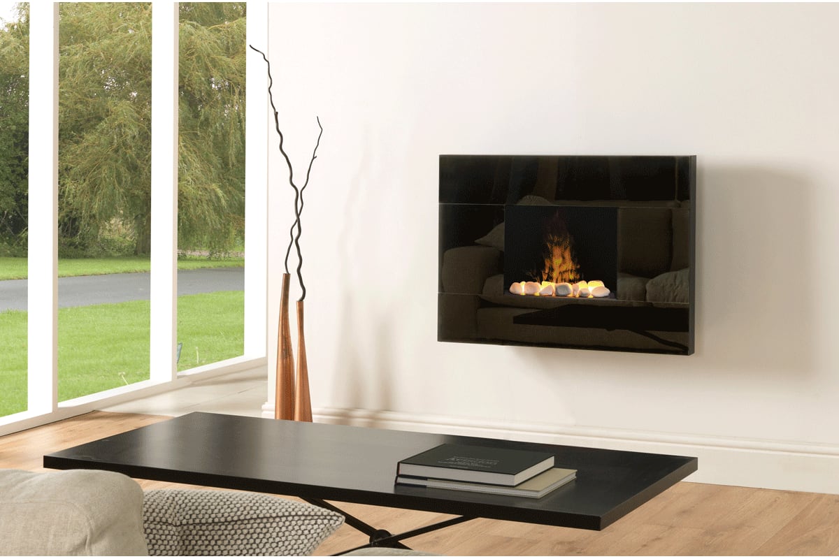 ウォールマウント(壁掛け)タイプの電気暖炉。ミストのゆらめきと光の反射により、リアルな炎を実現したオプティミストシリーズ。ろうそくの炎の揺れのような「1/f ゆらぎ効果」は心を落ち着かせてくれます。