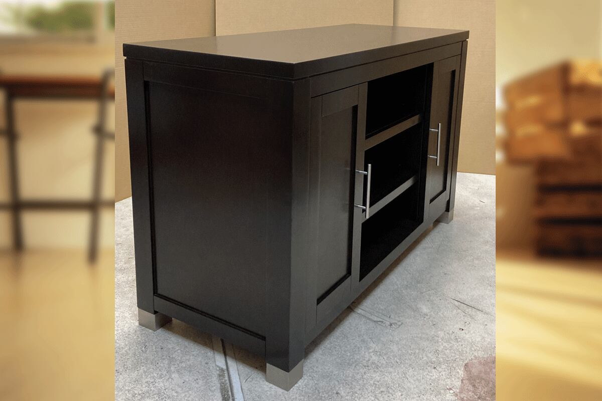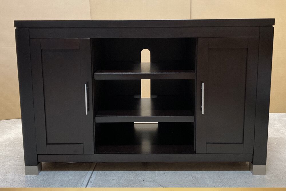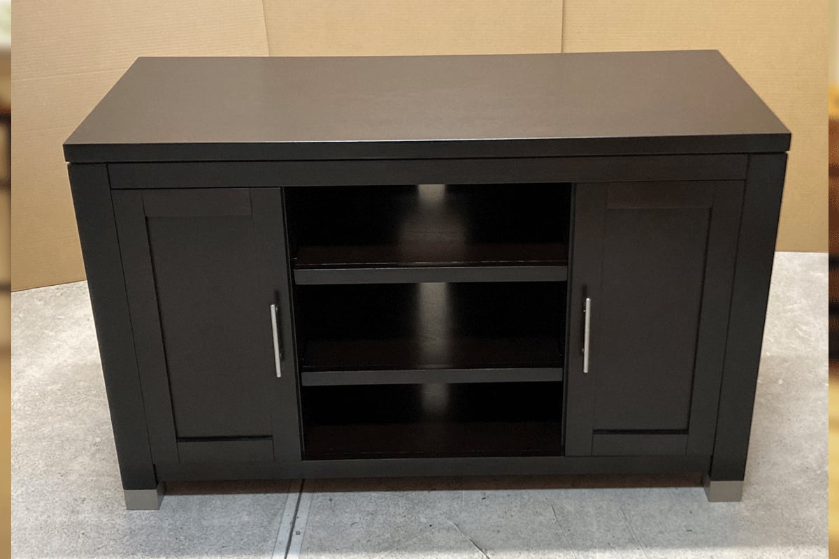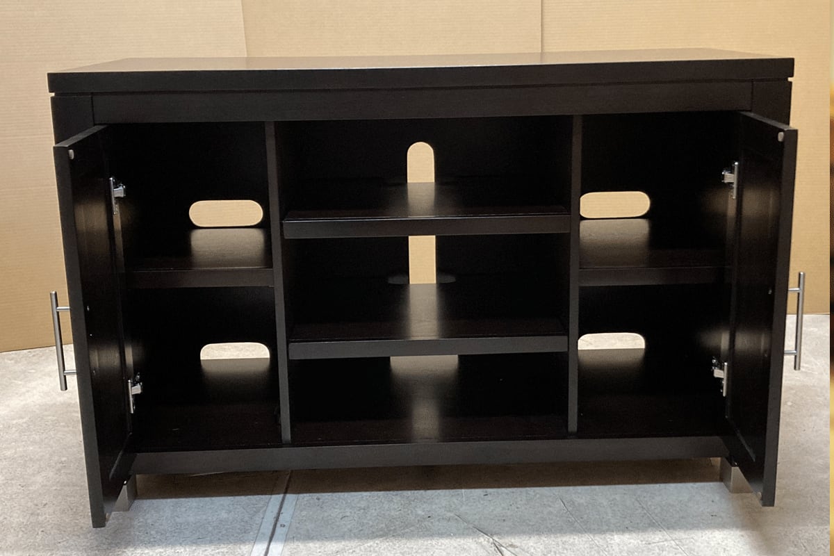 インテリア性と機能性に優れたメディアコンソール(テレビボード)です。棚板の高さは調節可能です。裏側には配線と換気用の穴が空いていますので、スッキリとお使い頂けます。アーツ&クラフトの流れを汲むシンプルで力強いデザインです。