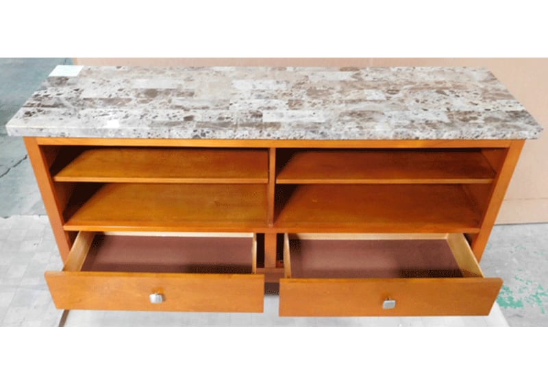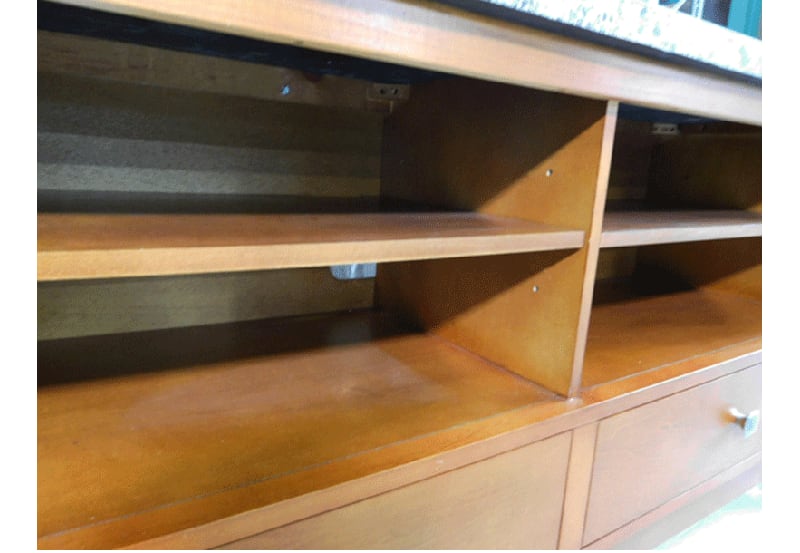 インテリア性と機能性に優れたメディアコンソール(テレビボード)です。棚板の高さは調節可能です。裏側には配線と換気用の穴が空いていますので、スッキリとお使い頂けます