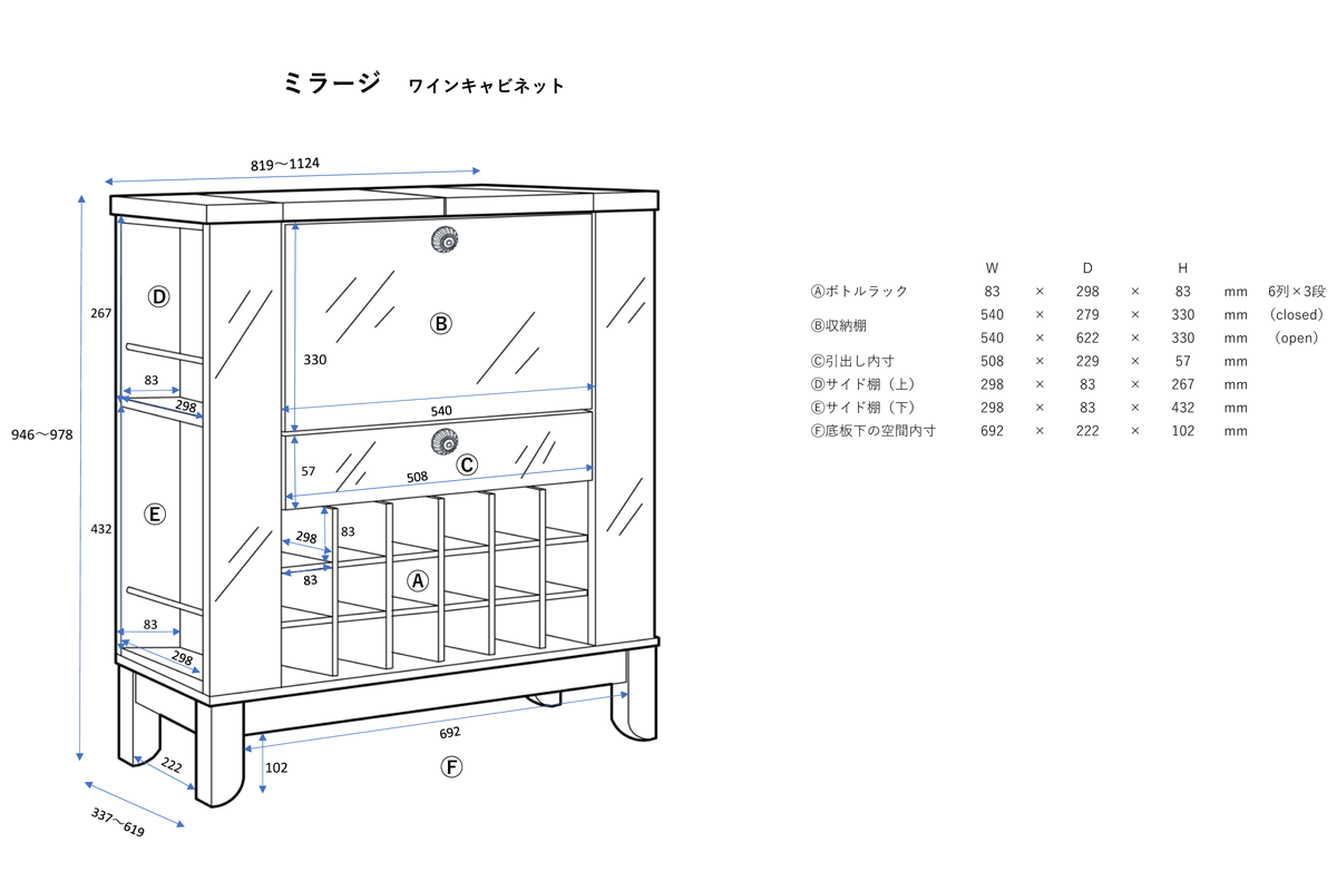 | W1124×D619×H978mm(open) | |||