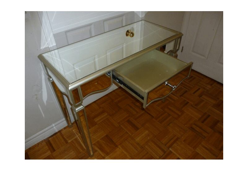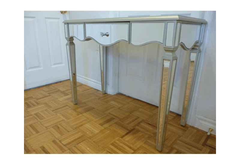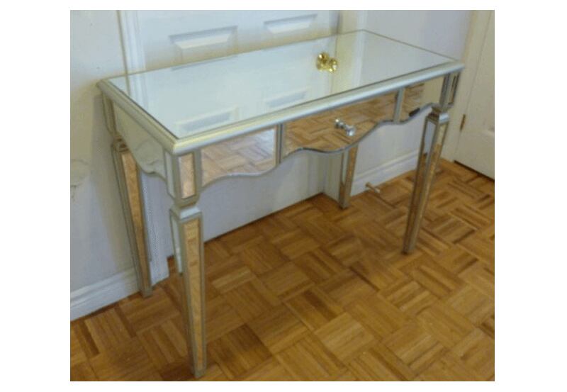 直輸入のコンソールテーブルセット。前面ミラー仕上げのスタイリッシュなデザインです。