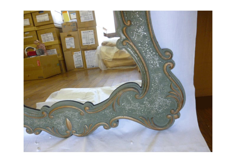 直輸入品のミラーです。アンティーク調のミラーは、インテリアとしてお勧めです。暖炉との相性も抜群で、お部屋のアクセントにもなり、優雅な空間を演出してくれます。